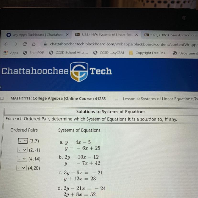 You can also choose pairs by trying the points in the equations. Once we have settled on a solution, we don't need to try that set of equations anymore.