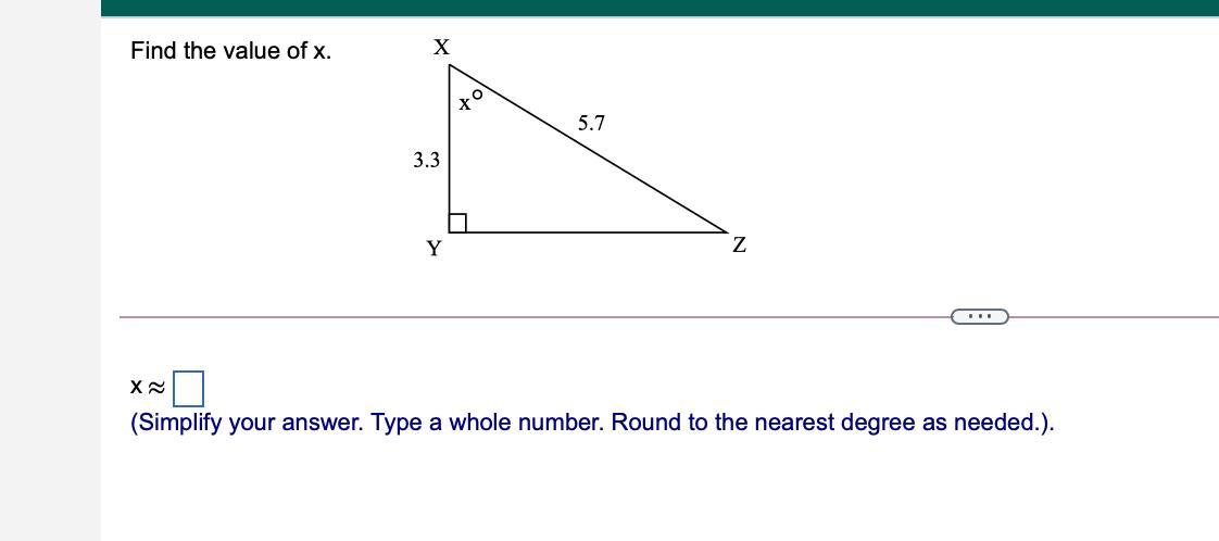 So it is a fact that 3.3 is adjacent to x. And 5.7 is the hypotenuse.