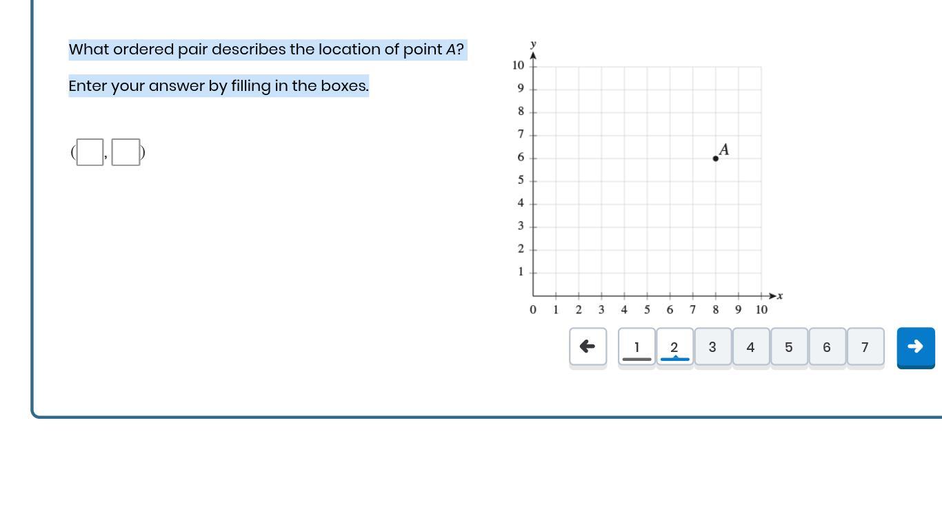 When graphing points, always start on the X-axis. If we look at point A, it is 8 units over on the X-axis so the first number is 8. As for the 6, when we look at the Y-axis we have to go up 6 units so the second number is 6.