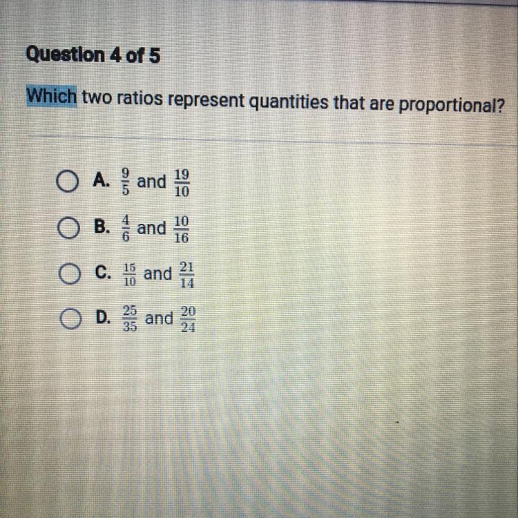 Which two ratios represent quantities that are proportional