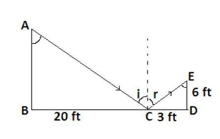 Mirror placed at C, is 20 feet from the base of peak. Tyler is 3 feet away from the mirror.