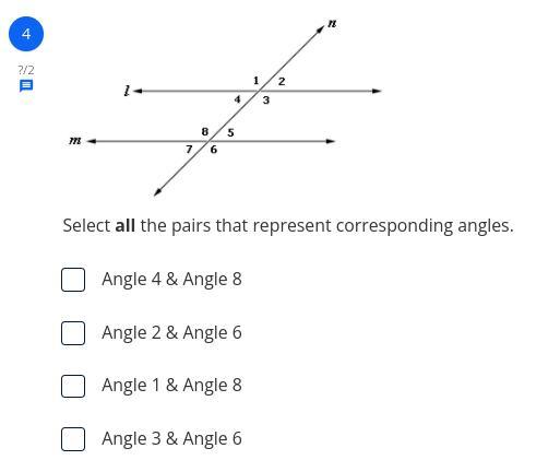 Select all the pairs that represent corresponding angles.