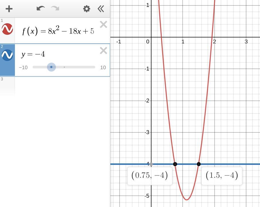 -4 = 8x^2 -18x +5 . . . . . . . . set f(x) = -4