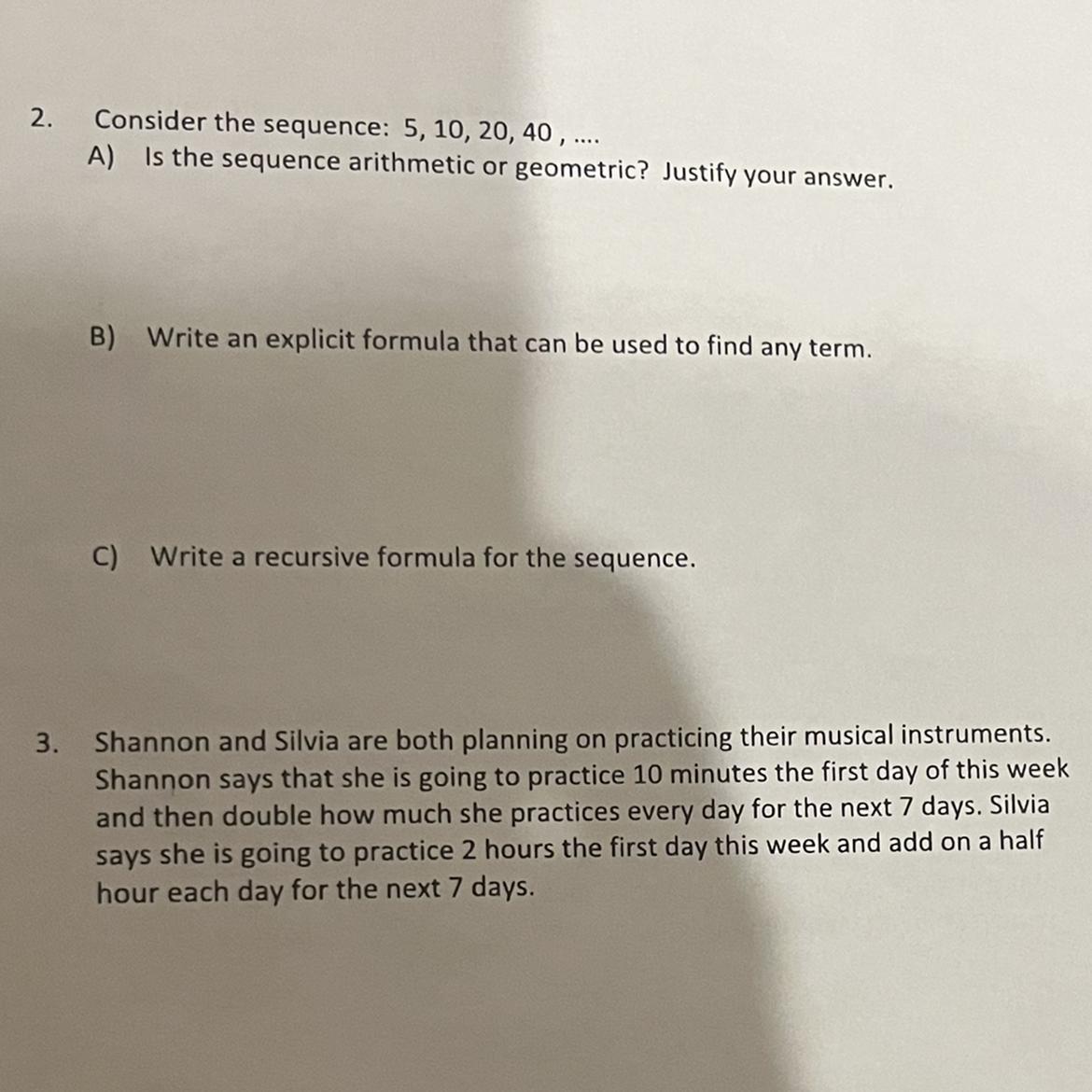 c. The recursive formula for this sequence is a<em>n+1 </em>= a<em>n</em> x 2