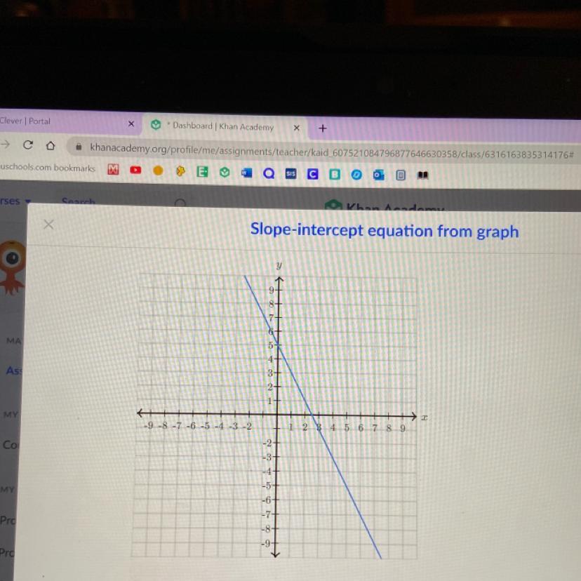 Since when x=0 is y=5, and x=1 is y=3, this mean that the slope goes <em>down 2</em> for each time the line goes <em>right 1,</em> meaning that the slope is -2x.