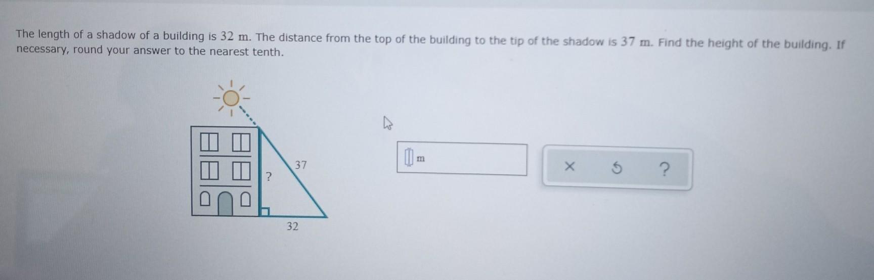 The distance from top of the building to the tip of the shadow = Hypotenuse = 37 m
