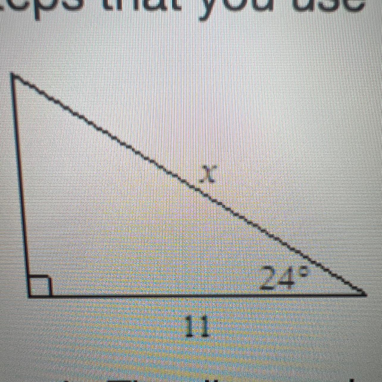 Round to the nearest tenth. The diagram is not drawn to scale. Solution: We know that. cosθ = adjacent/hypotenuse. Substituting the values. cos22 = x/11.