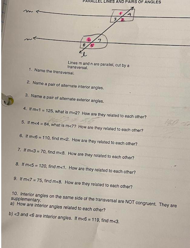 For number two name two angles that are inside the parallel lines and for three the opposite name two that are basically verticle outside of the parallel lines.