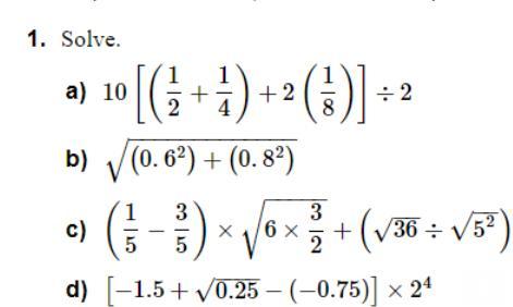 a) 10[(1/2+1/4) + 2(1/8)] ÷ 2