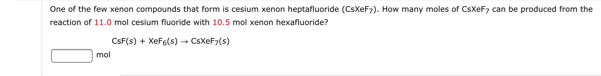 he reaction of 11.0 mol cesium fluoride with 10.5 mol xenon hexafluoride?