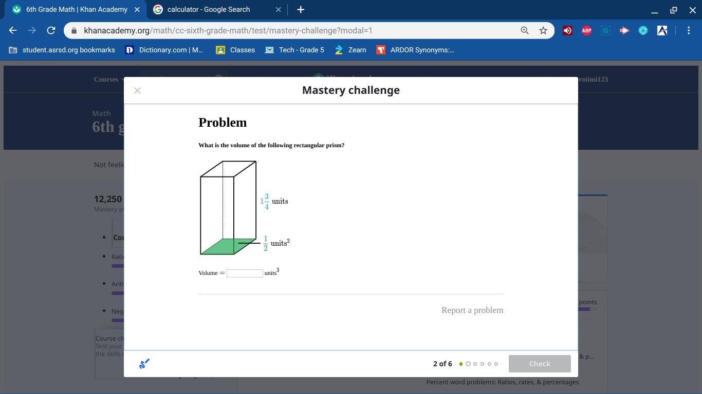The volume is 7/8 units^3