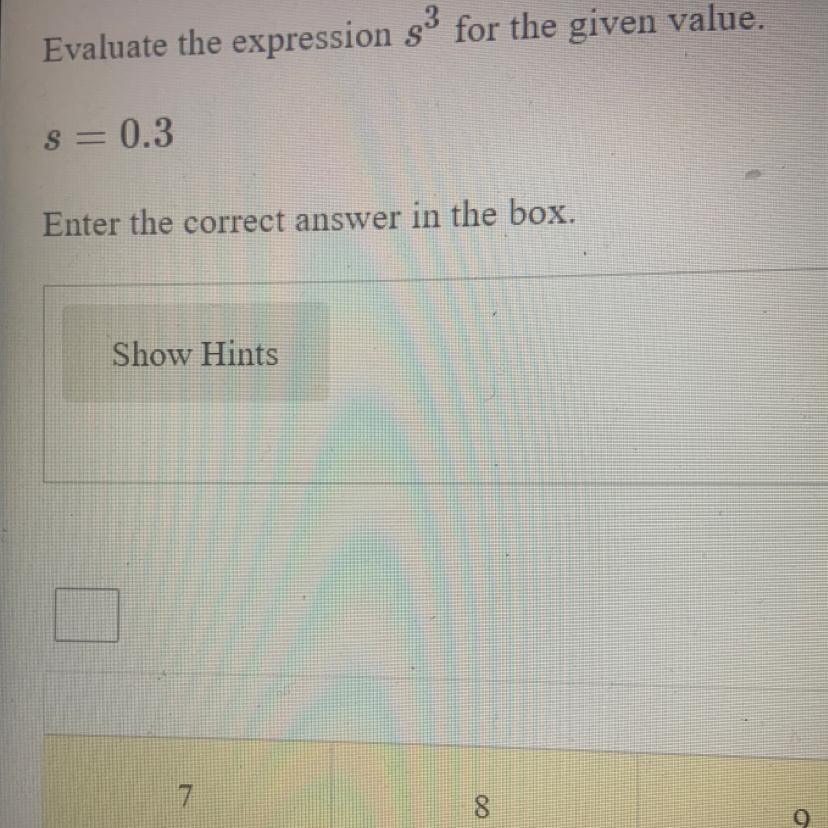 If <em>s </em>= 0.3, and <em>s</em> is being cubed, that's the same as 0.3 cubed