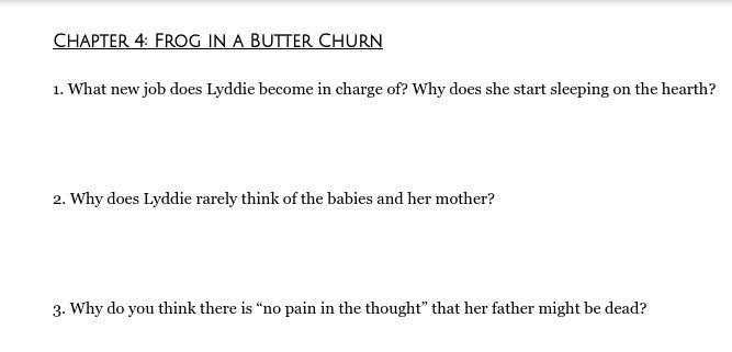 1. It was now March and Lyddie was in charge of helping tap the tree for maple sugar. She was also in charge of clarifying the sugar after it was gathered. This was hard and tiring work, but as always Lyddie worked her hardest.