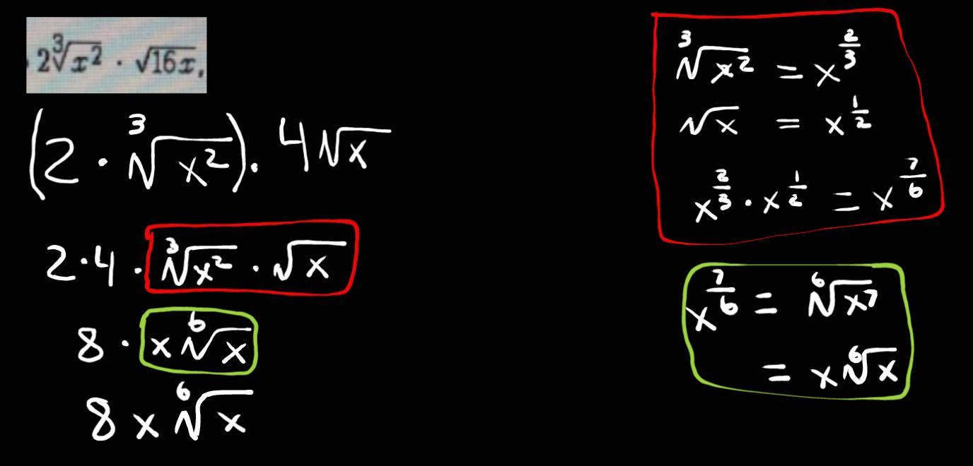 The question is actually: 2 \sqrt[3]{x^3} ·\sqrt{16x}