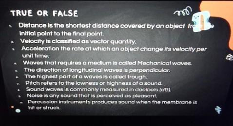 6. False, the highest part is called crest and the lowest is the trough.
