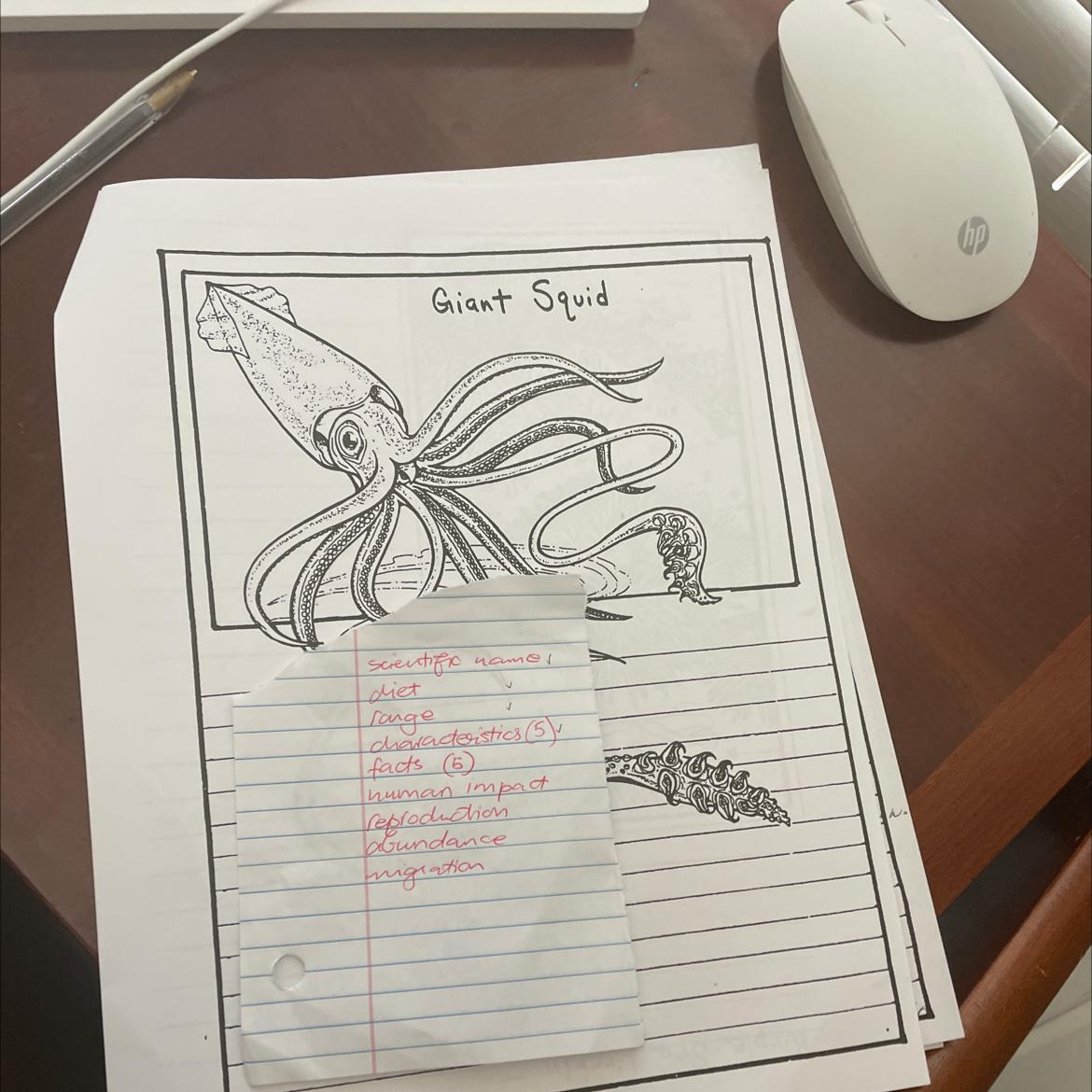 2: i dont know I think it says diet but: Giant squid mostly eat deep water fishes and other squids.