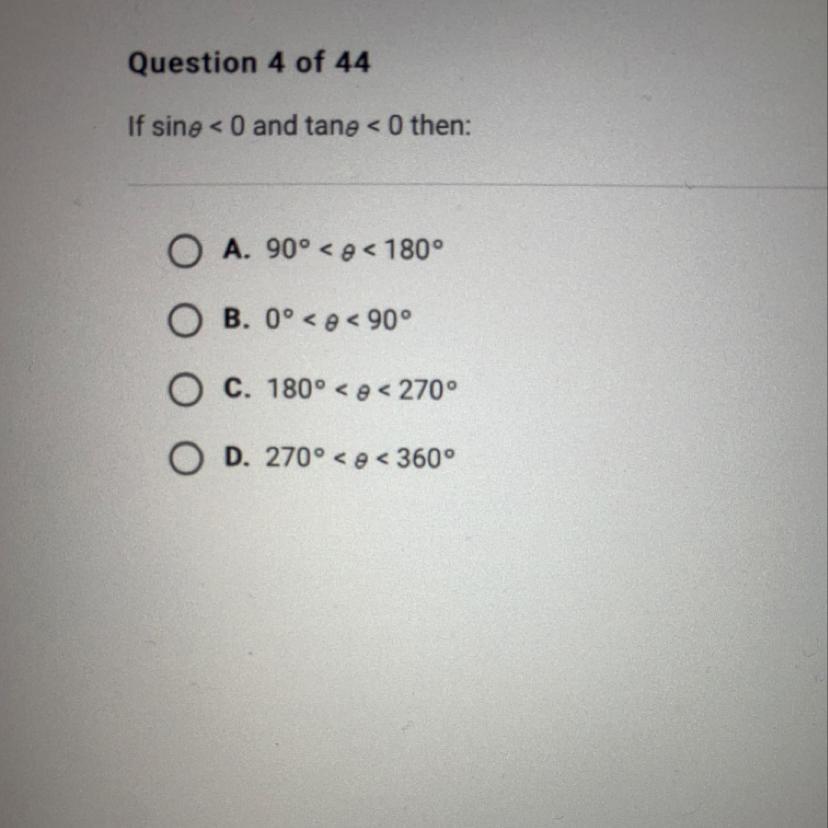 D. 270° < φ < 360°</h2>