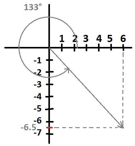 arctg (- 6.5 / 6.0) = -47.2906° ~ 47