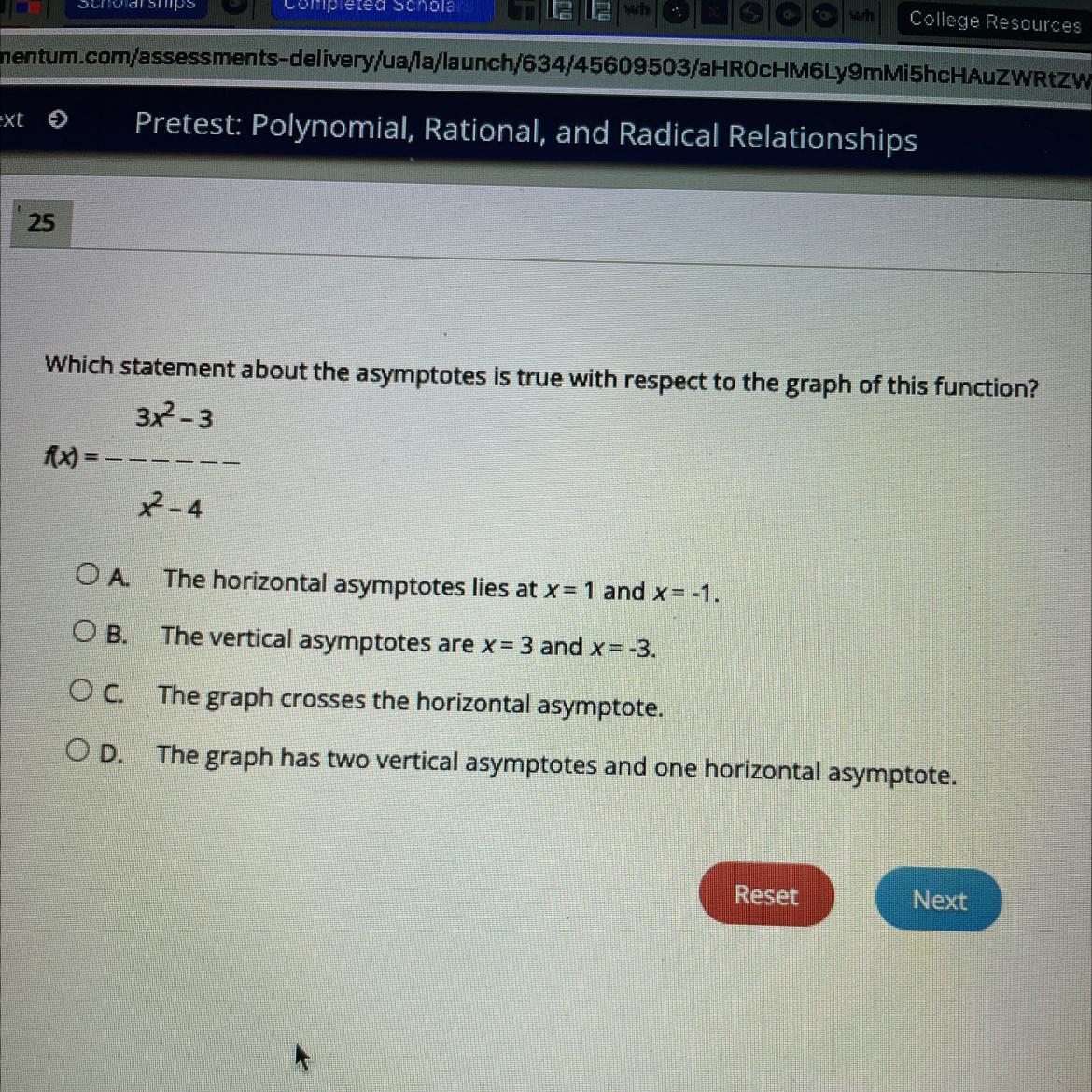 D. The graph has two vertical asymptotes and one horizontal asymptote.