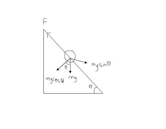 The Normal force mgsinθ - F = m × a can be re-written as: