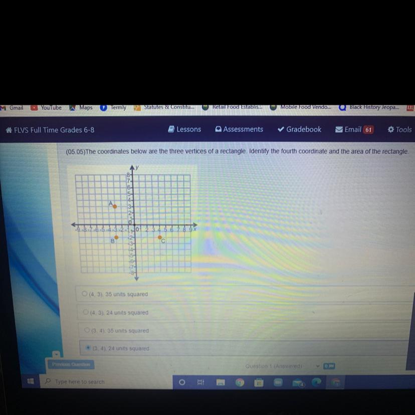 THE SLOPE IS 1 AND THE Y INTERCEPT IS -3, the x is equal to 1, and the -3 is in the place of the y intercept so your answer would be A.