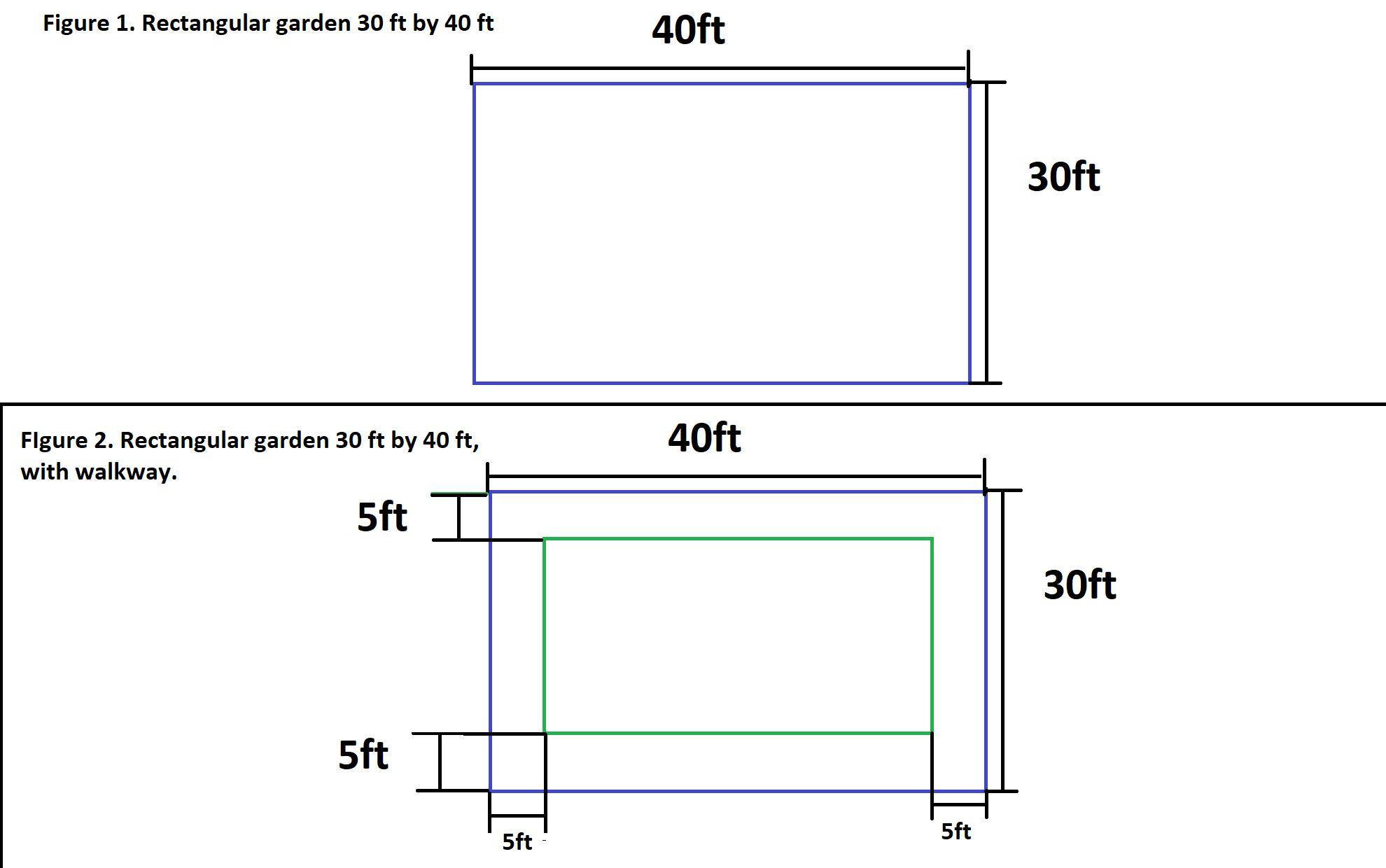 In first place you have a rectangular garden of 30ft by 40 ft as shown in Figure 1 (Added file).