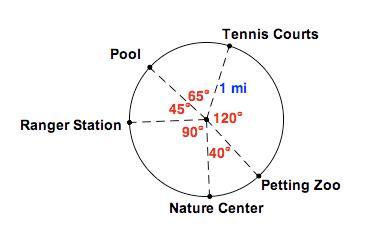 Nature center to petting zoo= 40°