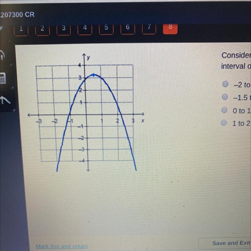 Then on this interval, the rate of change will be negative, meaning that this is the correct option.