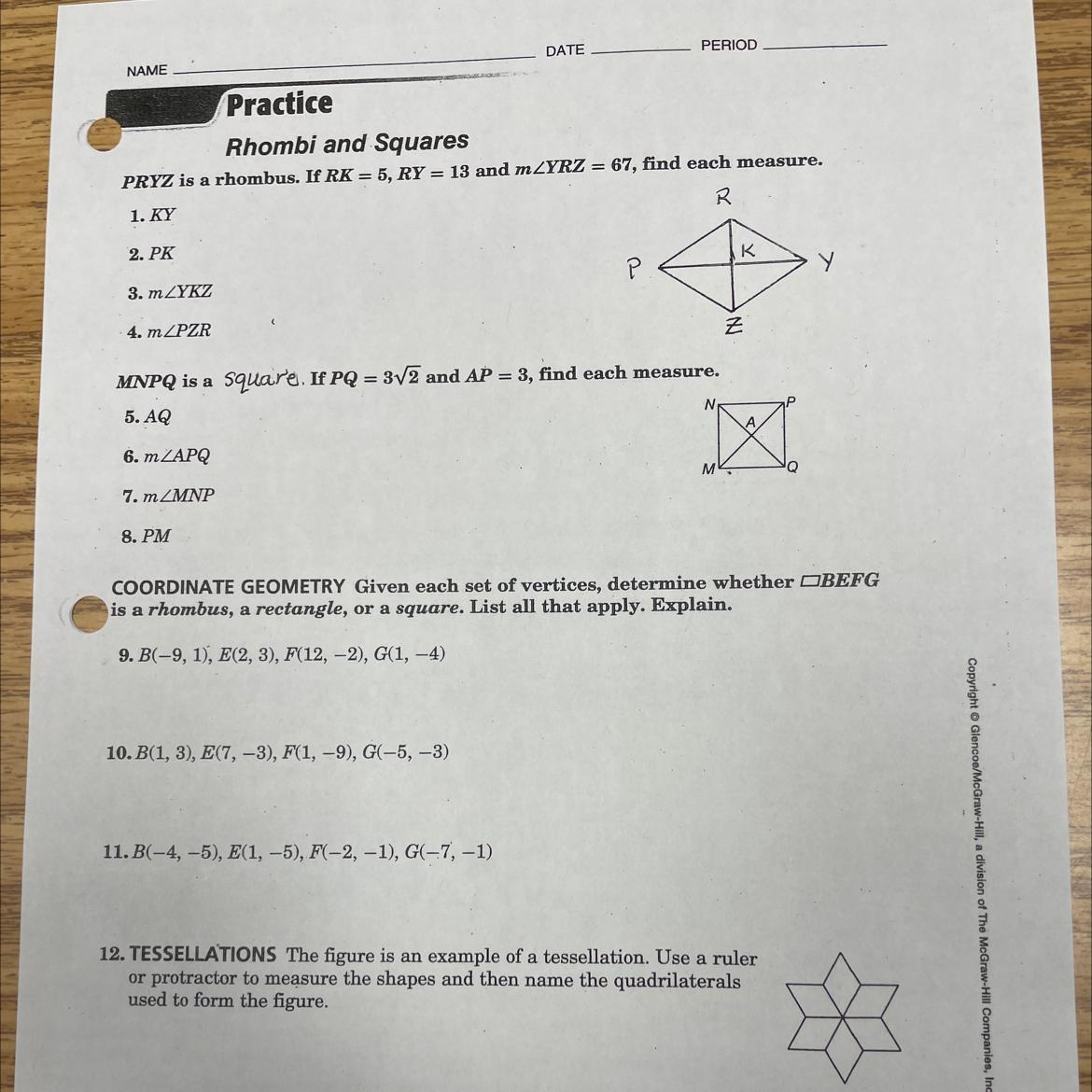 8) 6. Diagonals are bisected. So 3 is doubled to 6.