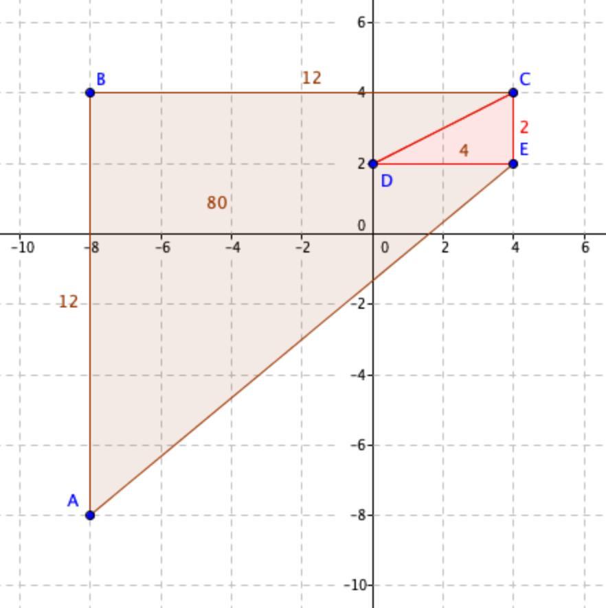 As with many composite area problems, this can be worked any of several ways. The attached shows trapezoid ABCE, from which triangle CDE can be removed to get the desired area.