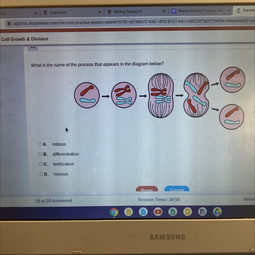 The correct answer is C. Prophase, prometaphase, metaphase, anaphase, telophase