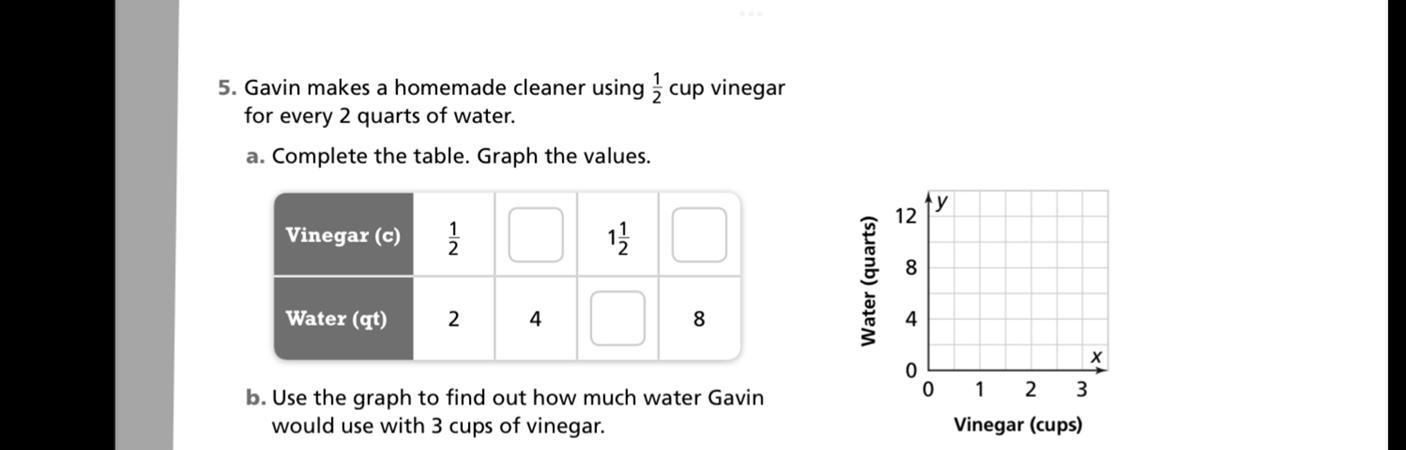 Therefore, Gavin would need to use 12 quarts of water with 3 cups of vinegar.