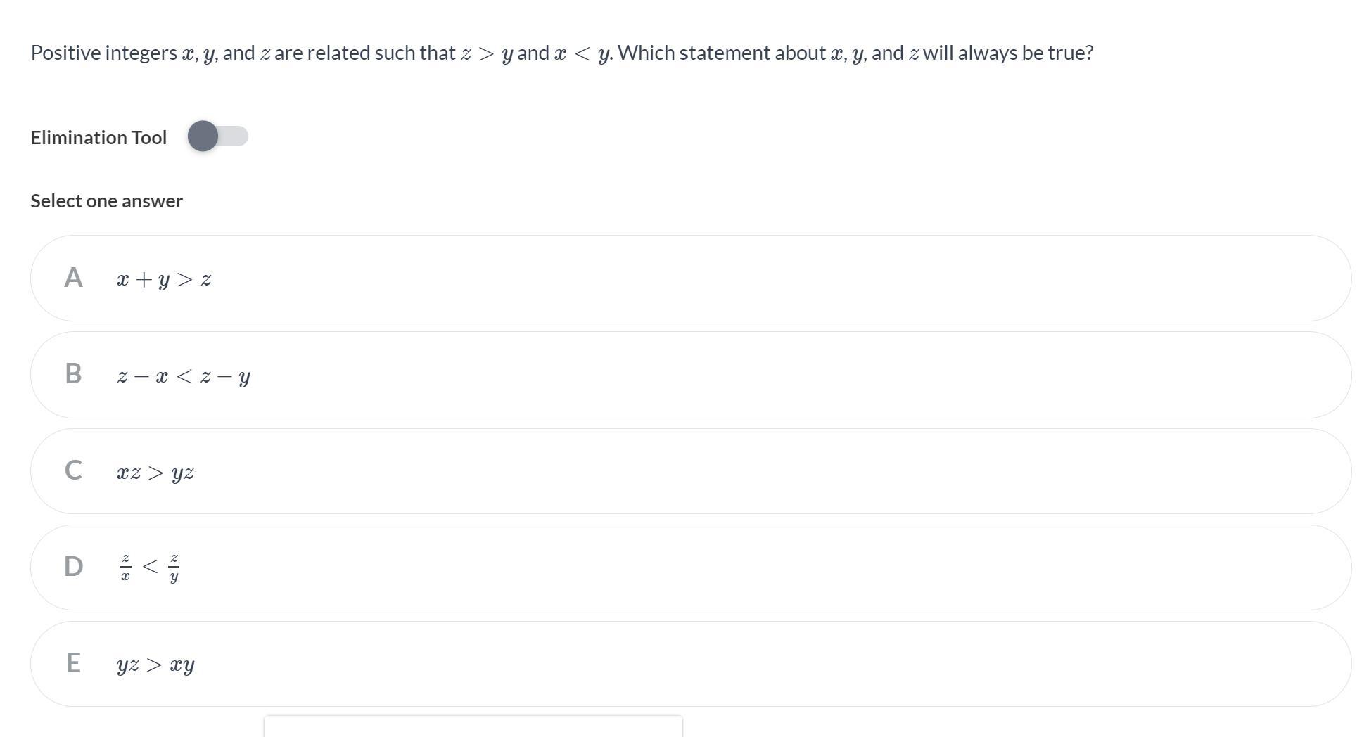 xz > yz